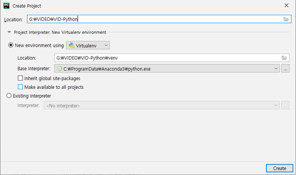 Executable을 선택하라고 한다. 기존의 가상환경을 사용하고 싶은데,