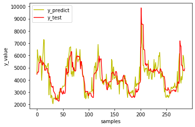 show_diff(y_predict, 'y_predict', y_test, 'y_test', 'samples', 'y_value')