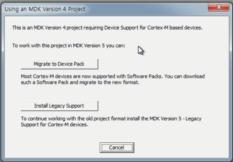 이전 버전의 MDK에서 만든 플젝을 읽어올리면 호환문제가 어쩌고 하는 메시지가 뜬다.