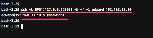 ssh -L 5901:127.0.0.1:5901 -N -f -l edward 192.168.33.10 |
