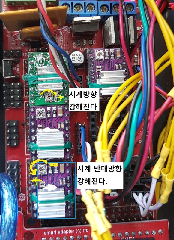 스테핑 모터 드라이버 스크류 돌리는 방향!!