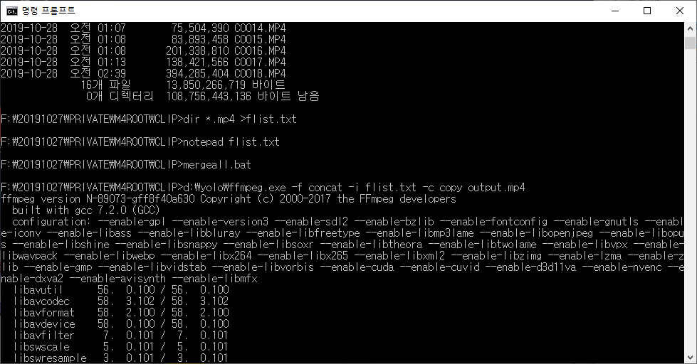 d:\yolo\ffmpeg.exe -f concat -i flist.txt -c copy output.mp4