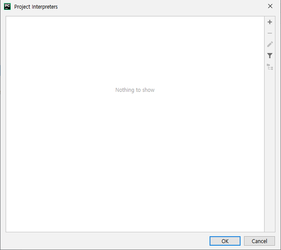 프로젝트 인터프리터가 없습니다.