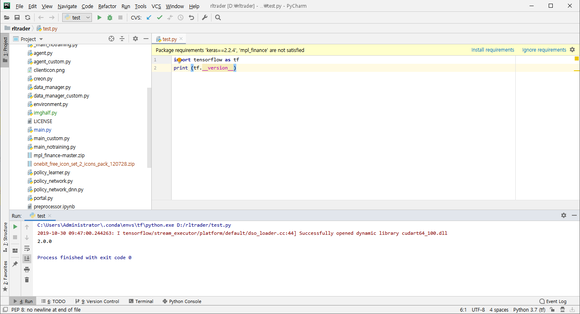 마지막으로 tensorflow를 pycharm에서 불러봅니다.